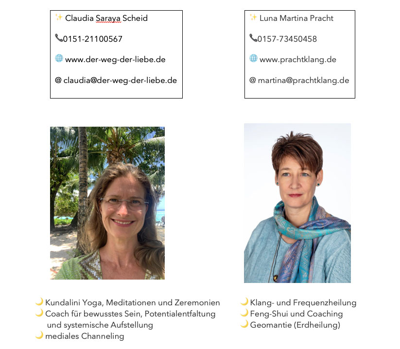 Informationen und Anmeldung unter: Claudia Scheid Tel: 0151-21100567 claudia@der-weg-der-liebe.de